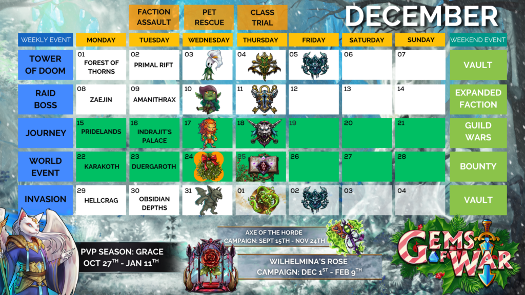 Reminder: We have an article that covers what each of these different icons are, for the various events in Gems of War. As well as links further to a list of the Class, Faction and Kingdom shields!