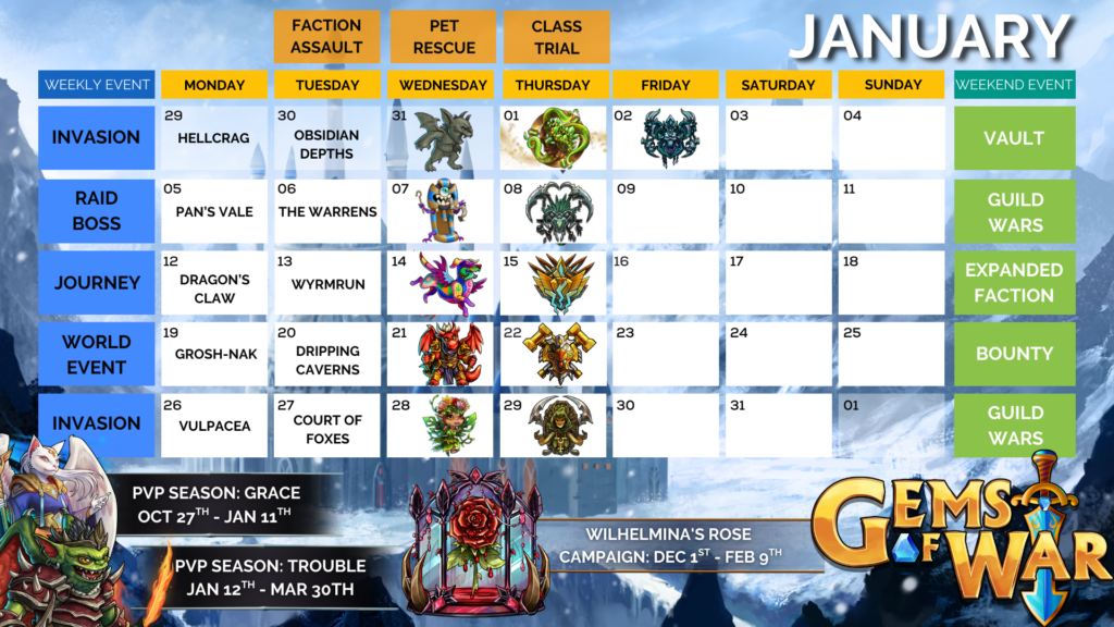 - PvP Season Grace ends and the new Season – Trouble, begins: 11th Jan – 30th March