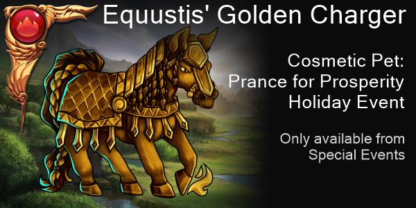 • Equustis’ Golden Charger: This cosmetic pet can be earned by fully purchasing all stock for Equustis’ Golden Charger or by purchasing the Golden Holiday Battle Pack 5 times.