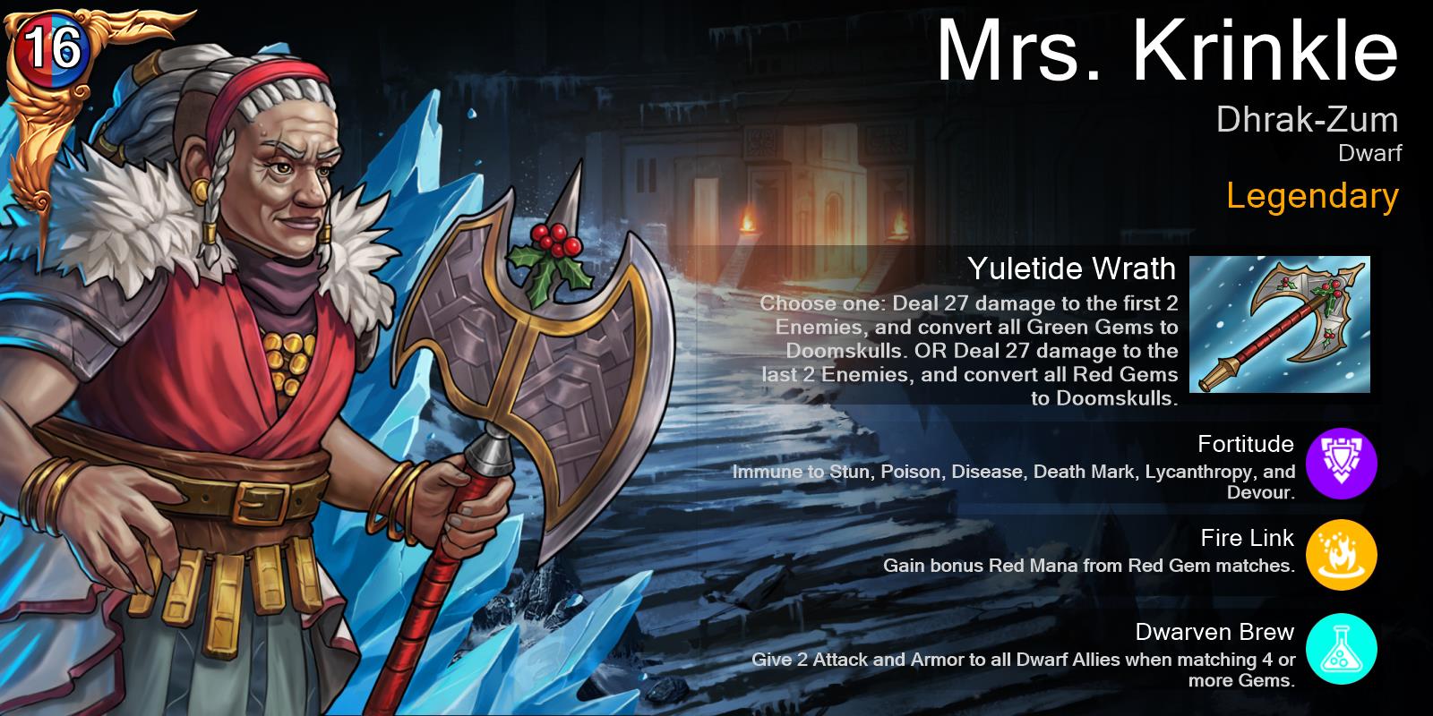 For the next 2 weeks we will have the Naughty or Nice event. Win Battles against Dhrak-Zum Enemies to earn Mistletoe that can be spent in the Event Shop for Rewards.