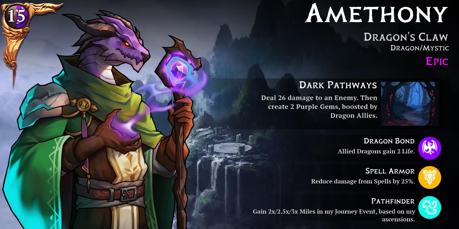 Amethony will be available in the Journey Shop, and will appear in Glory, Gem, Guild, and VIP chests in 3-4 weeks’ time.