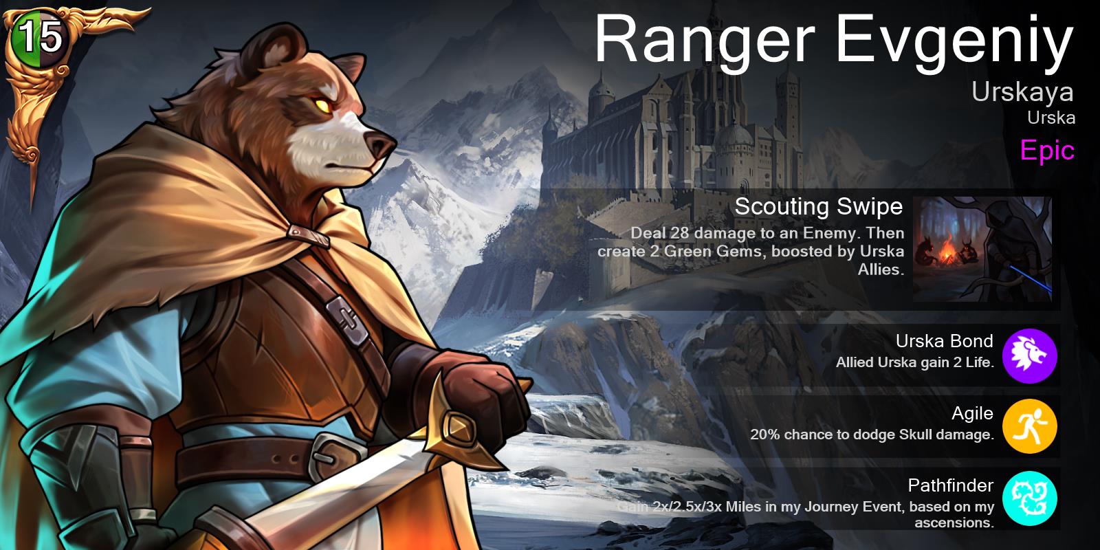 Ranger Evgeniy will be available in the Journey Shop, and will appear in Glory, Gem, Guild, and VIP chests in 3-4 weeks’ time.