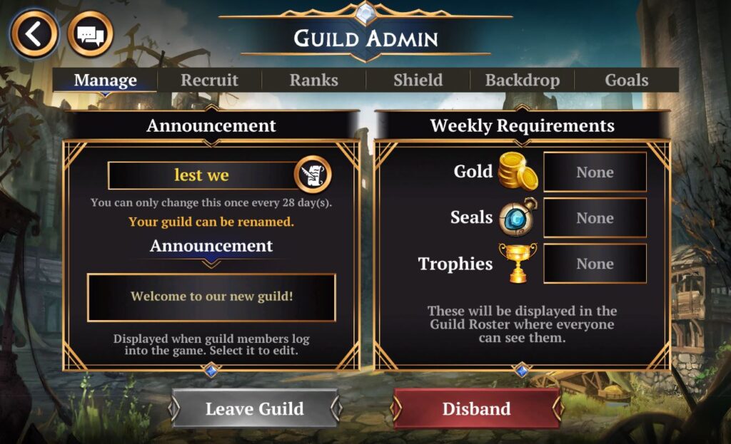 Guild Leaders may only change the Guild’s Name once every 4 weeks.
