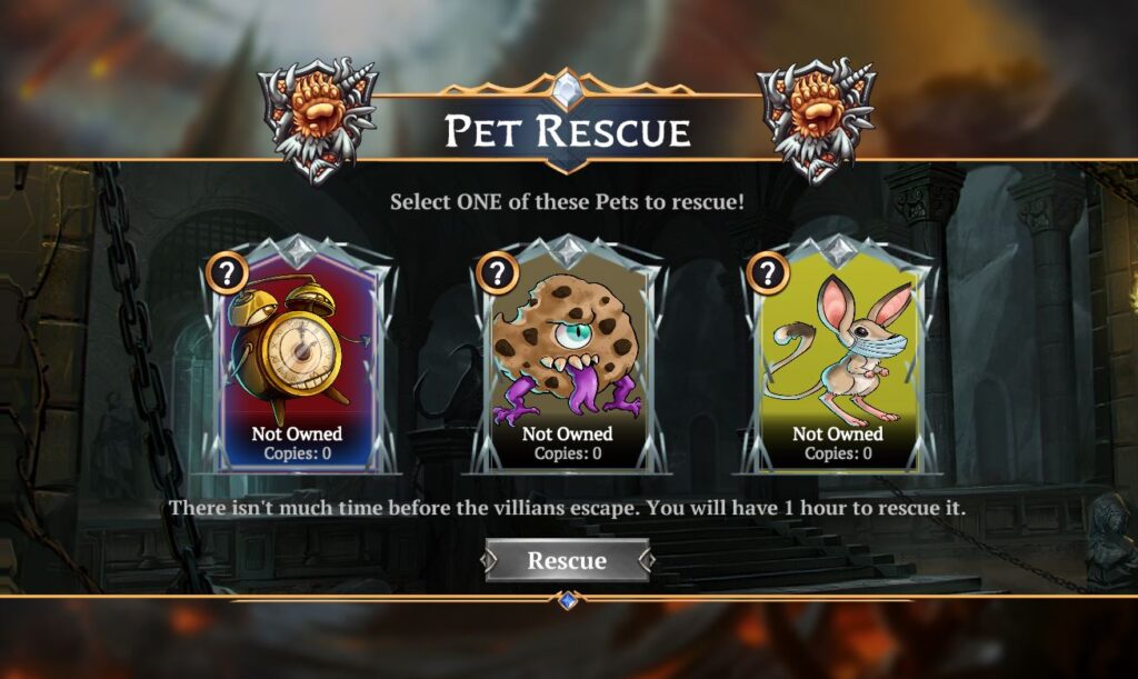 Only 1 Pet can be chosen from the 3 Pet options. Once a Pet has been selected, it will be the Pet Rescue available to the player and their guild.