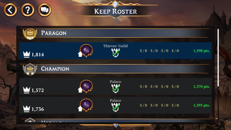 Similar to classic Guild Wars, all guild members will be able to view the Roster. It can be accessed from the Guild’s Keep menu. Players will also be able to review the final Roster results during the 2 day Guild Wars “grace period” after the final daily war ends.