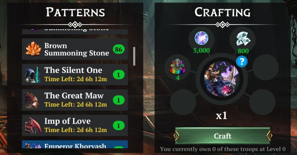 This allows us to cycle through the Soulforge lists for Mythic and Legendary Troops faster, allowing for new Troops to go into the rotation more quickly.