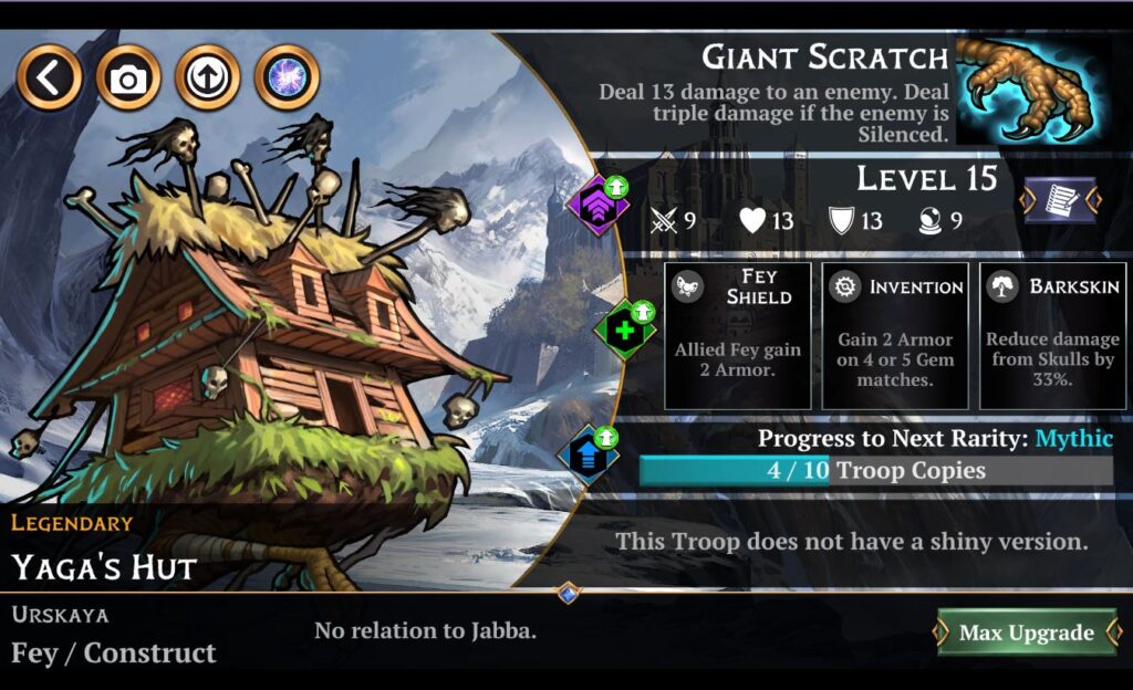 - Ascension: The Troop’s progress to their next ascension Rarity.